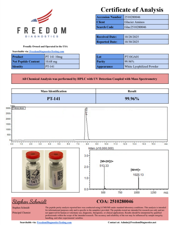 All information is for educational purposes only. Glacier Aminos makes no claims regarding efficacy or safety. Purchasers are responsible for ensuring proper handling and use in compliance with all applicable laws and regulations.